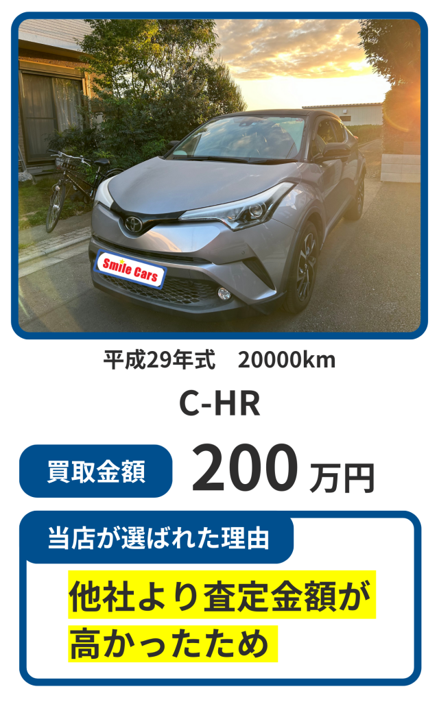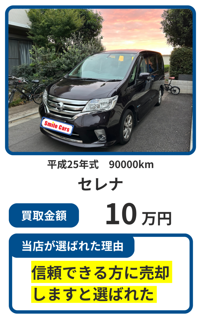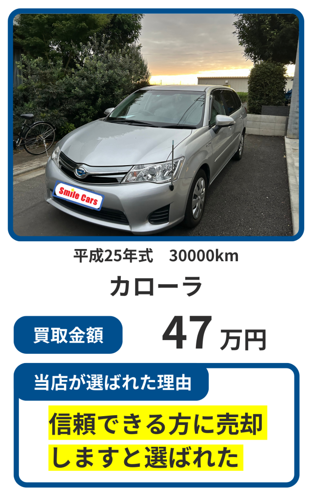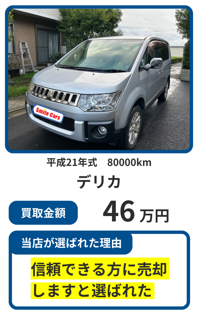 kounosuke05102025-04-28 車買取サイトMOTAで査定をしていただき、来ていただいた3社の中で1番高額査定になりました! 査定に来ていただいた、板橋さんは親切、丁寧なご対応で終始安心してお取引が出来ました。また入金の速さにも驚きました。売買契約後1時間程での入金でした。 この度は本当にありがとうございました。 また次回車両売却の時は利用させていただきたいと思います。 とても信頼できる会社様でした。 Fumiko Fumiko2025-03-31 車売るならここです! 4店舗で査定しましたが、大きく差をつけてダントツの高価格で買い取っていただきました。書類で手違いがあっても丁寧に対応していただきましたし、文句なしに優良店でした。 友達や知人にも絶対オススメします! s k2025-03-31 気さくで丁寧な対応で感じの良い方でした。車両の引き取りも自宅まで来て頂きその場で即日入金でしたので安心でした。次回の買い替えの際も頼みたいと思います。 けい2025-03-29 板橋社長にお世話になりました こちらのスケジュールに合わせて頂きその都度連絡をして下さいました 迅速丁寧な対応と査定に 安心致しました ありがとうございました yama2025-03-29 連絡したらすぐに査定に来ていただき、引渡し日、場所の変更も心良く対応していただけました。ありがとうございました。 近藤いくみ2025-03-29 限られた日数の中でしたがご丁寧に対応していただきました! 金額も満足で、親子共々喜んでおります。 ありがとうございました sou aoki2025-02-15 接遇の感じも良く、他業者よりいい金額の提示がありました。支払いも引渡し時に、その場での振込みだったので非常に早いと感じました。 N Saku.2025-02-06 店の方は腰が低くとても人が良く丁寧な対応で接してくれる。 売却する時点ですぐに料金を振り込んでくれるのがすごく信用ができるし安心。 不安も何もなく気持ちいい取引が出来ました。ありがとうございます。もっと読み込む