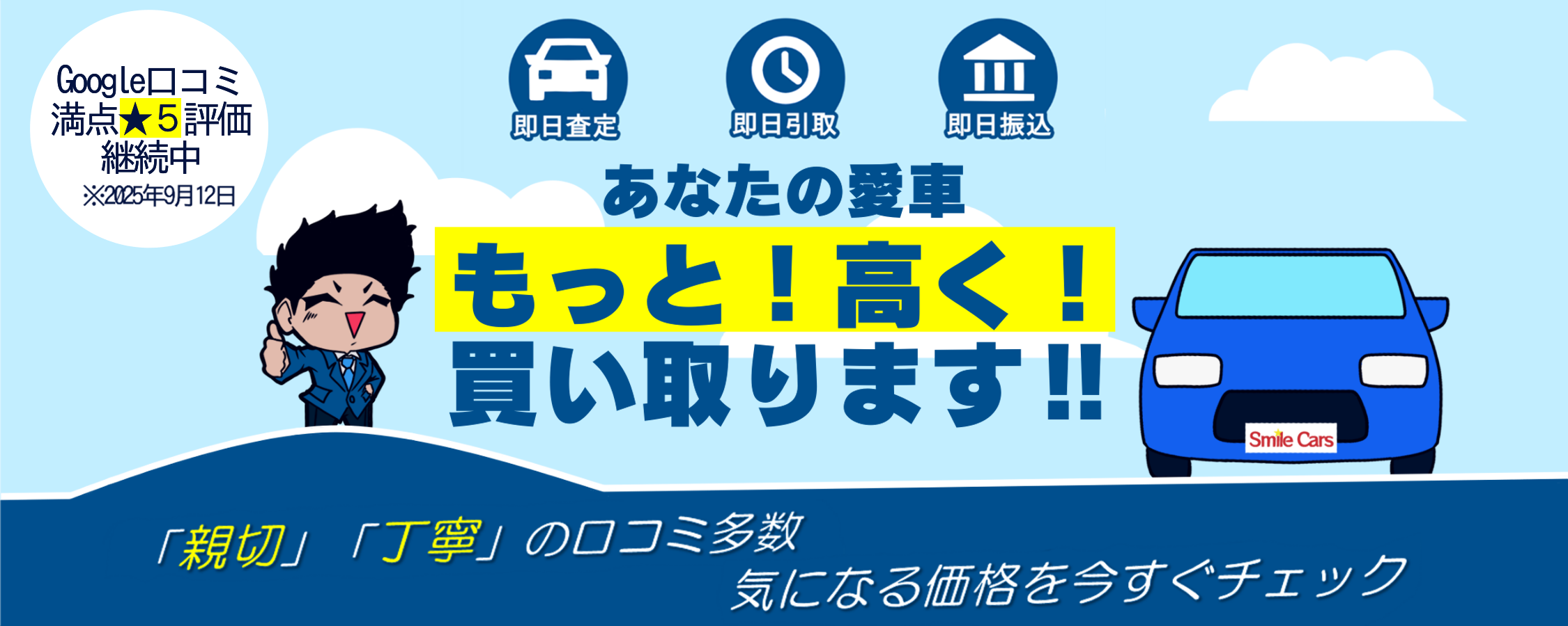 現地で車を見させていただければ30分ほどで見積額をお出しすることが可能です。